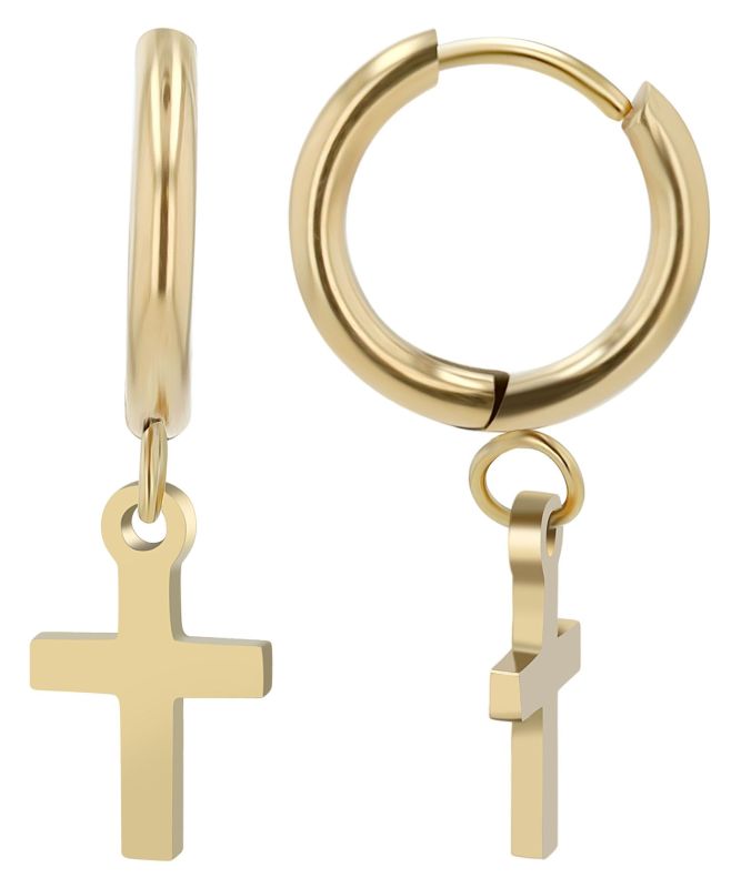 Creolen einzeln "Kreuz" in Edelstahl vergoldet