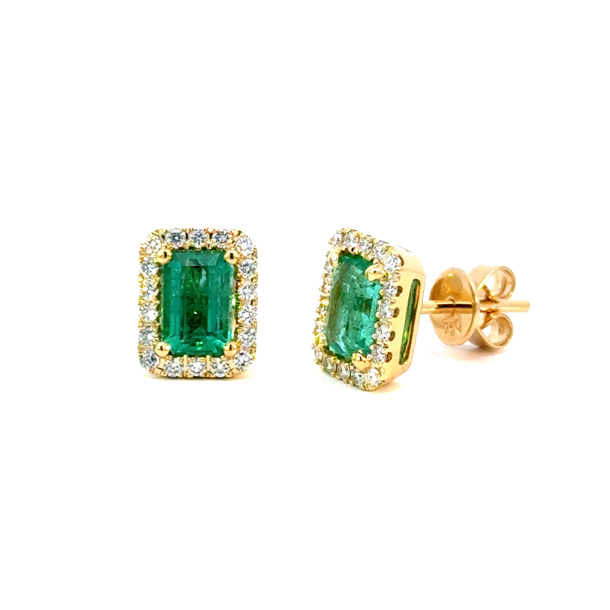 Ohrstecker in Gelbgold 18kt mit Smaragd und Brillanten