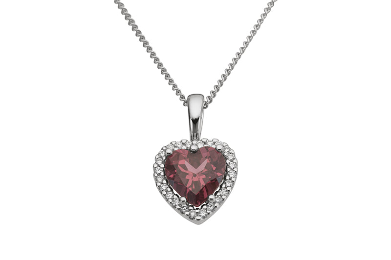 Anhänger "Herz" in Weissgold 18kt mit Brillanten und Rhodolith