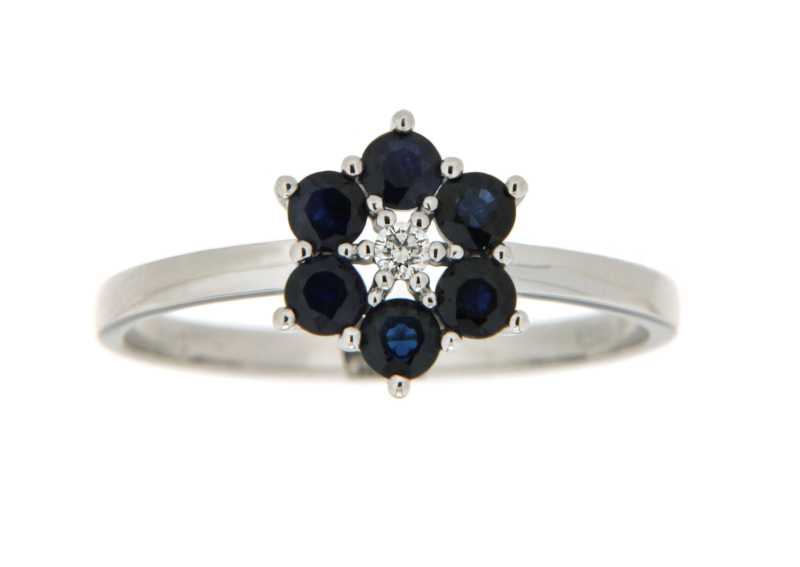Ring "Blume" in Weissgold 18kt mit Safir und Brillanten