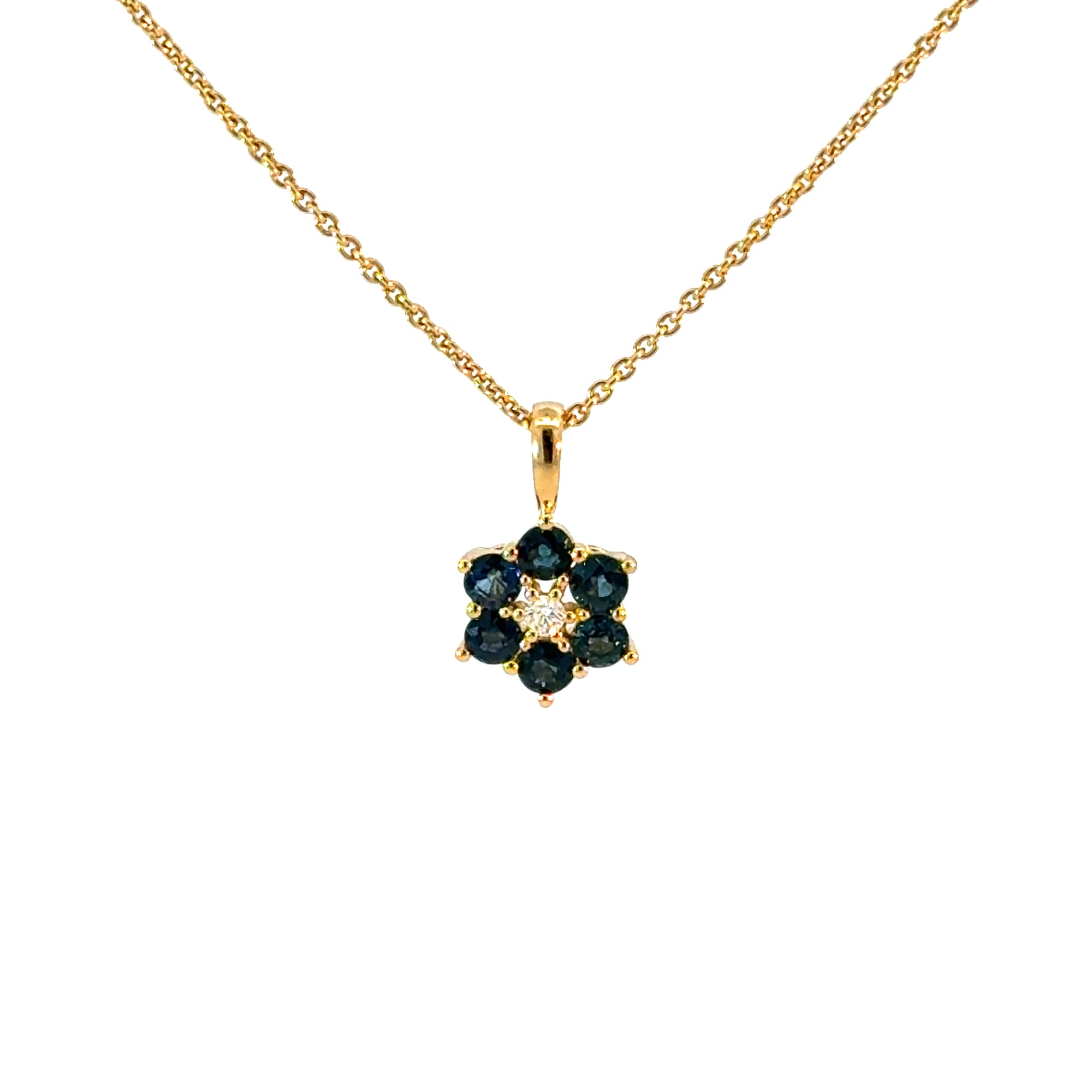 Anhänger "Blume" in Gelbgold 18kt mit Safir und Brillanten