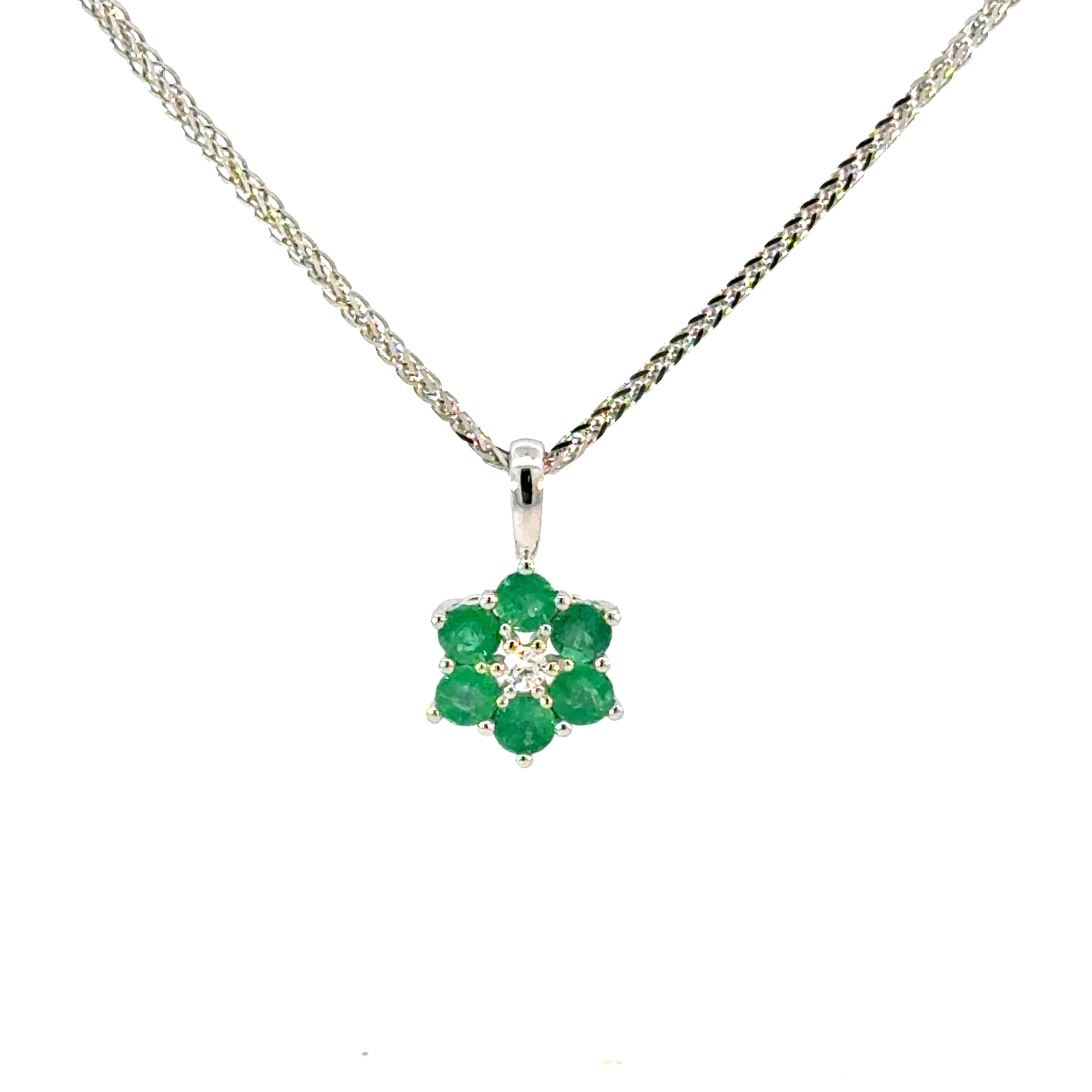 Anhänger "Blume" in Weissgold 18kt mit Smaragd und Brillanten