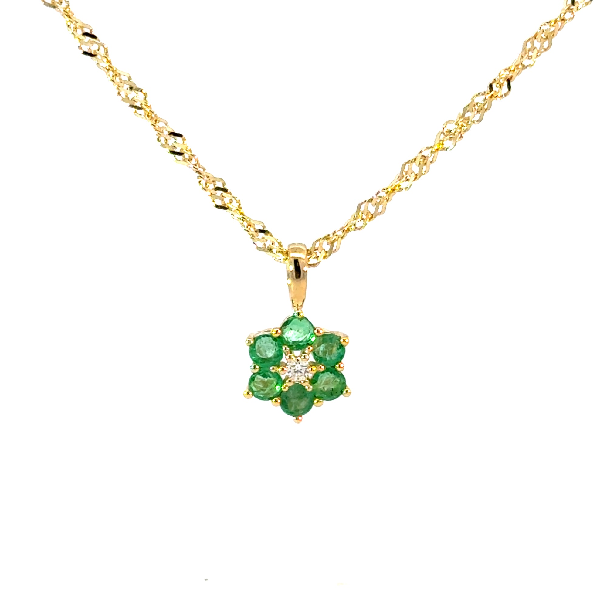 Anhänger "Blume" in Gelbgold 18kt mit Smaragd und Brillanten