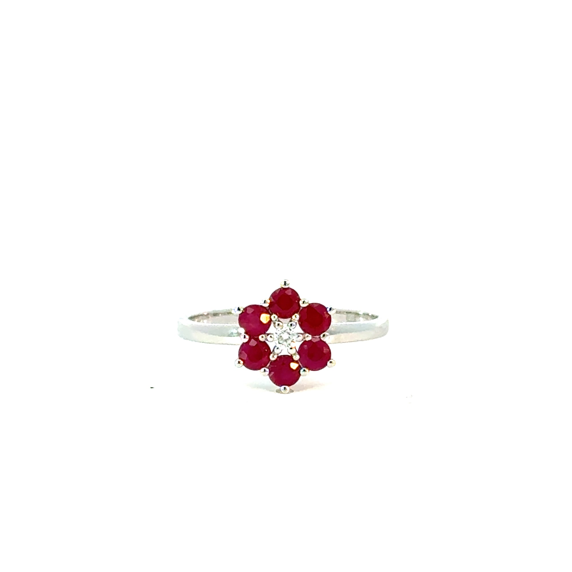 Ring "Blume" in Weissgold 18kt mit Rubin und Brillanten