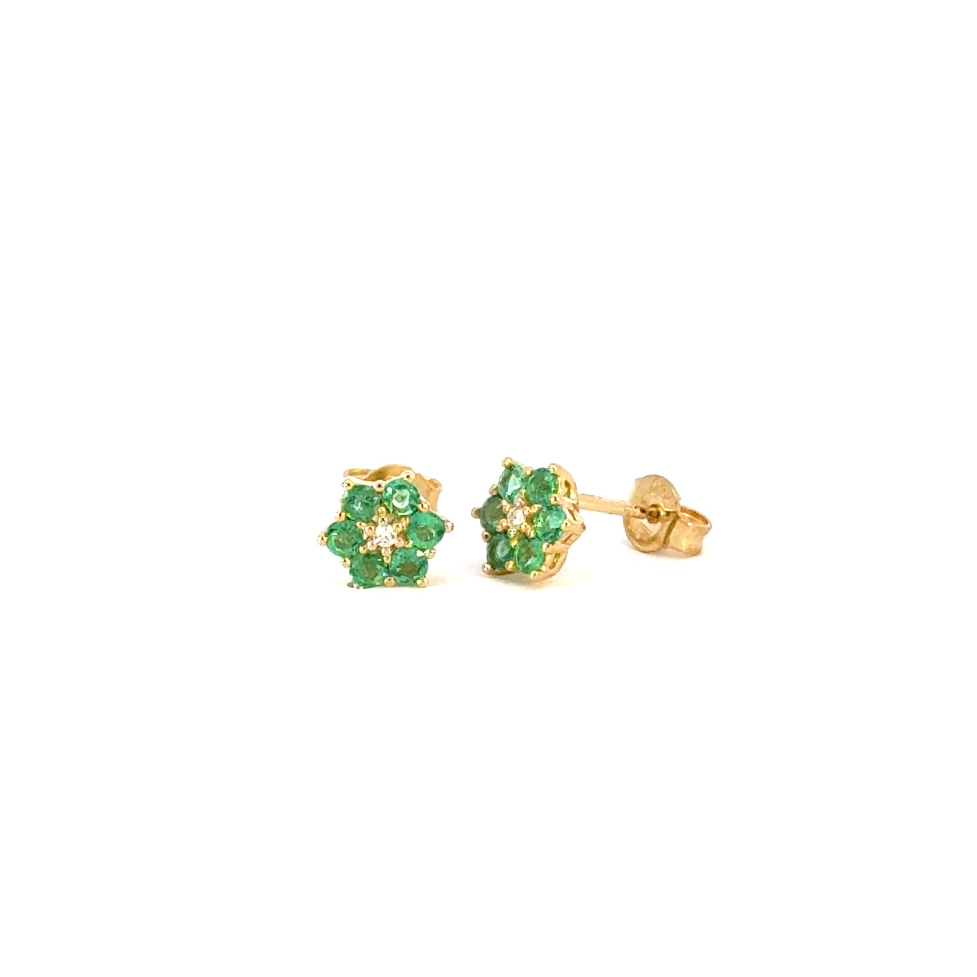 Ohrstecker "Blume" in Gelbgold 18kt mit Smaragd und Brillanten