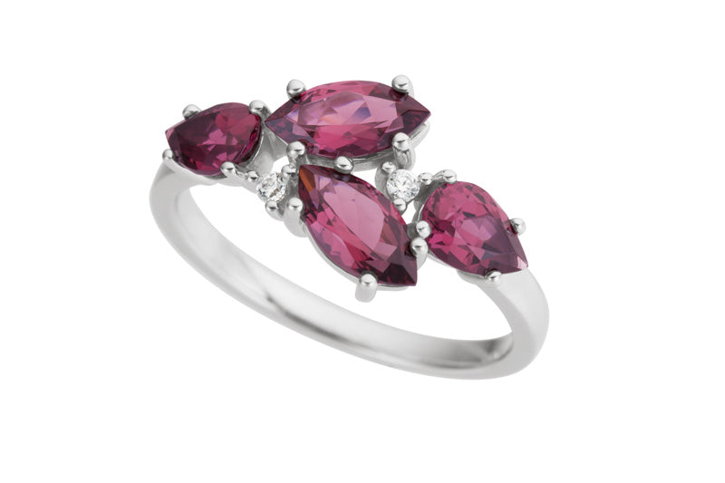 Ring in Weissgold 18kt mit Brillanten und pink Rhodolith